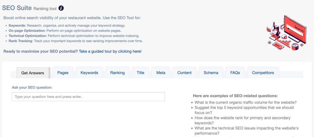 The SEO Module helps you understand and improve how your restaurant appears in search results—across local search, organic search, and AI-powered search experiences.