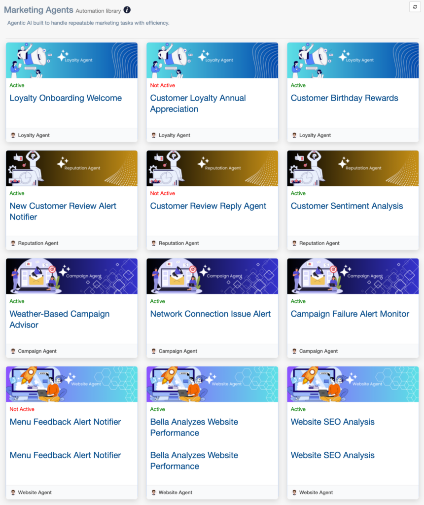 AI Agents in NGAZE are automated tools that monitor your marketing, website, reputation, and customer data and take action by analyzing, alerting, or generating insights based on predefined rules.